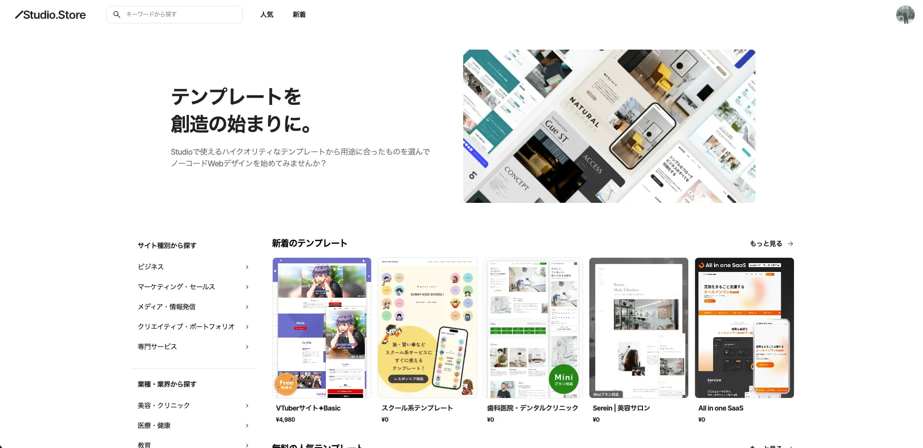 Studioには、プロのデザイナーが制作した高品質なテンプレートが多数用意されています。コーポレートサイト、ポートフォリオ、イベントページなど、用途に合わせたテンプレートを選択でき、初心者でもデザイン性の高いサイトを短時間で構築可能です。