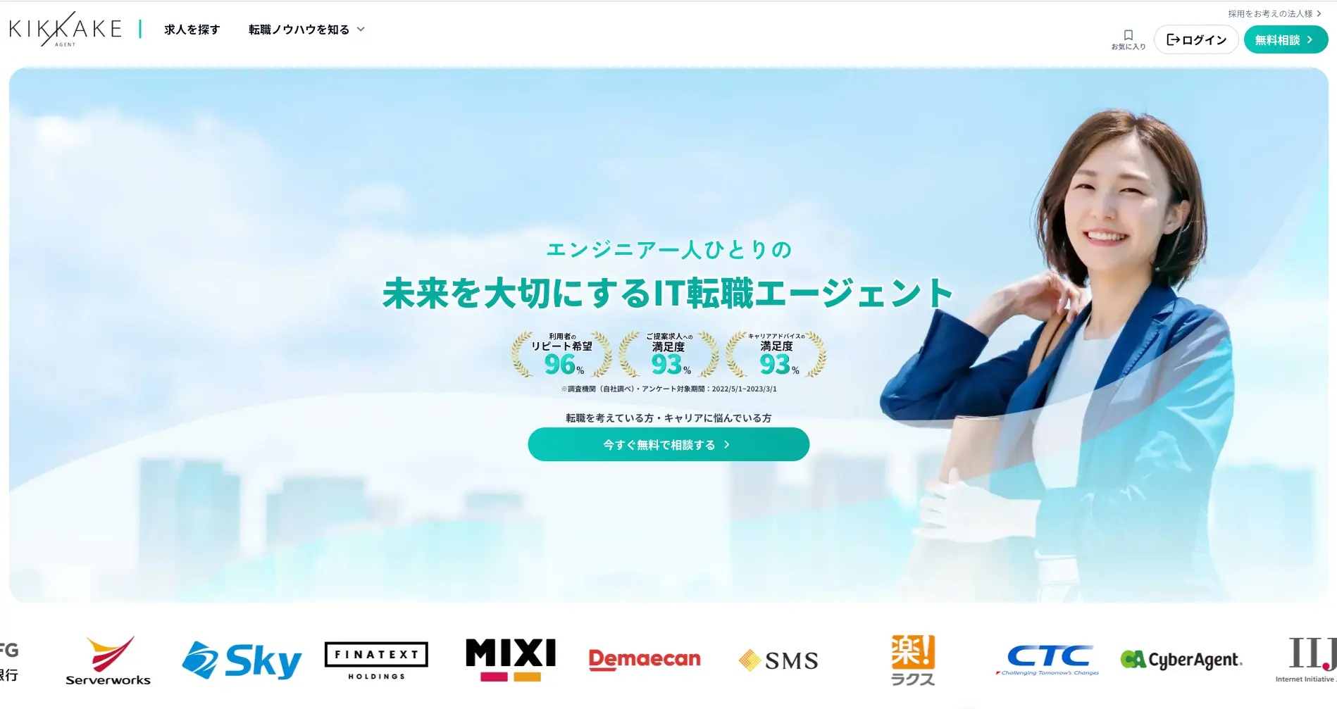 全国に拠点があるため、地方のIT企業や地方拠点でのエンジニア採用にも対応可能です。IT業界特化の出発点を持つエージェントだけあって、IT職種に関するマッチング精度は一般的な総合型よりも高い水準にあると考えてよいでしょう。