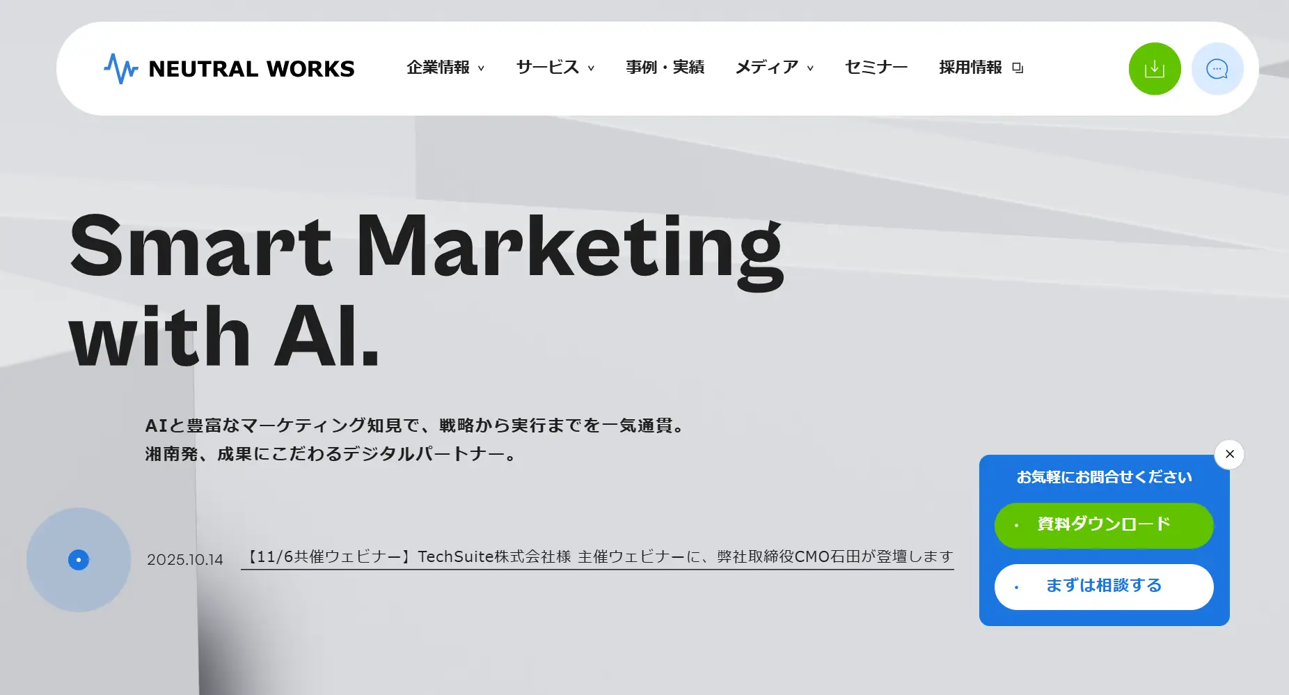 株式会社ニュートラルワークスは、Webマーケティング全般をカバーする総合支援会社です。SEO、広告運用、サイト制作など幅広いサービスを提供し、複数施策を組み合わせた改善を実現します。中小企業への支援実績が多く、予算に応じた柔軟な提案が可能です。