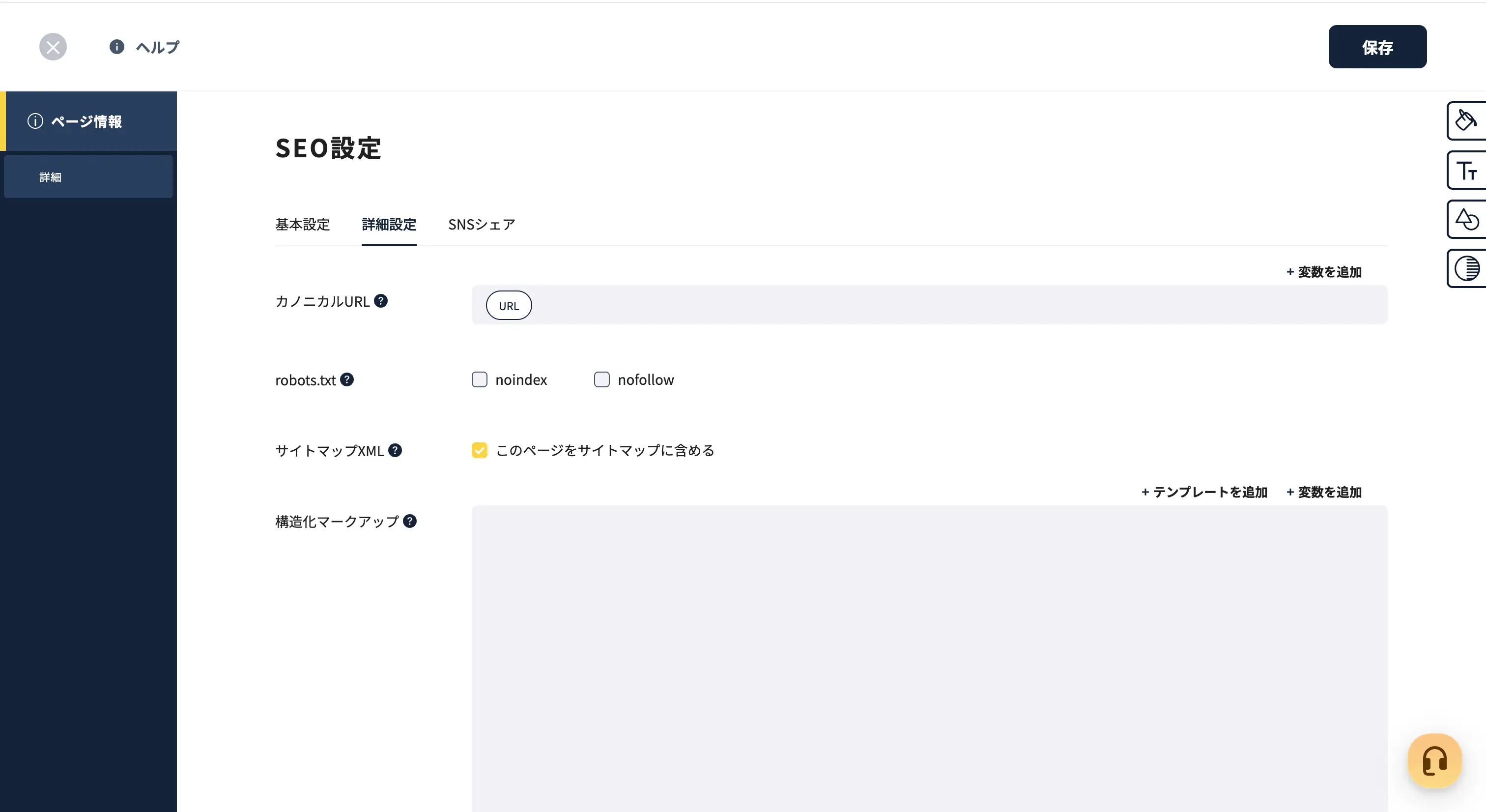 SEOタイトルやディスクリプション、カノニカルURLなどの設定を管理画面から直感的に行えます。