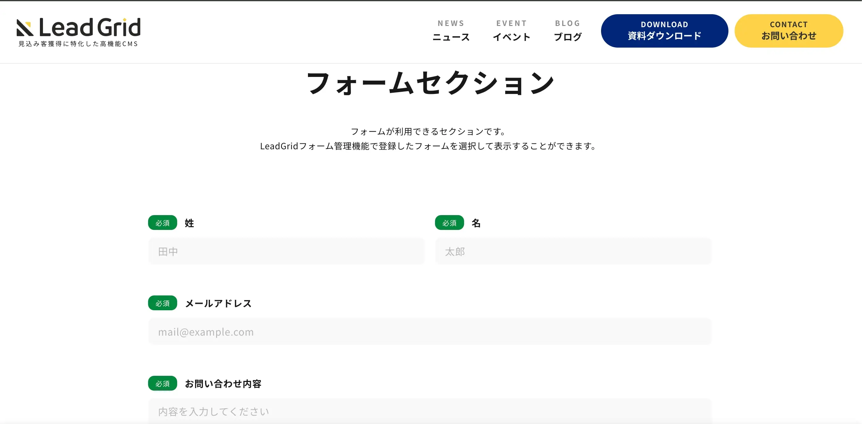 Webサイト制作 / CMS・MAツールのLeadGrid(リードグリッド)は、フォームパーツに「姓・名」および「姓・名ふりがな」パーツを追加するアップデートを実施しました。このアップデートにより、フォーム入力時に名字(姓)と名前(名)を分けて取得・管理できるようになります。