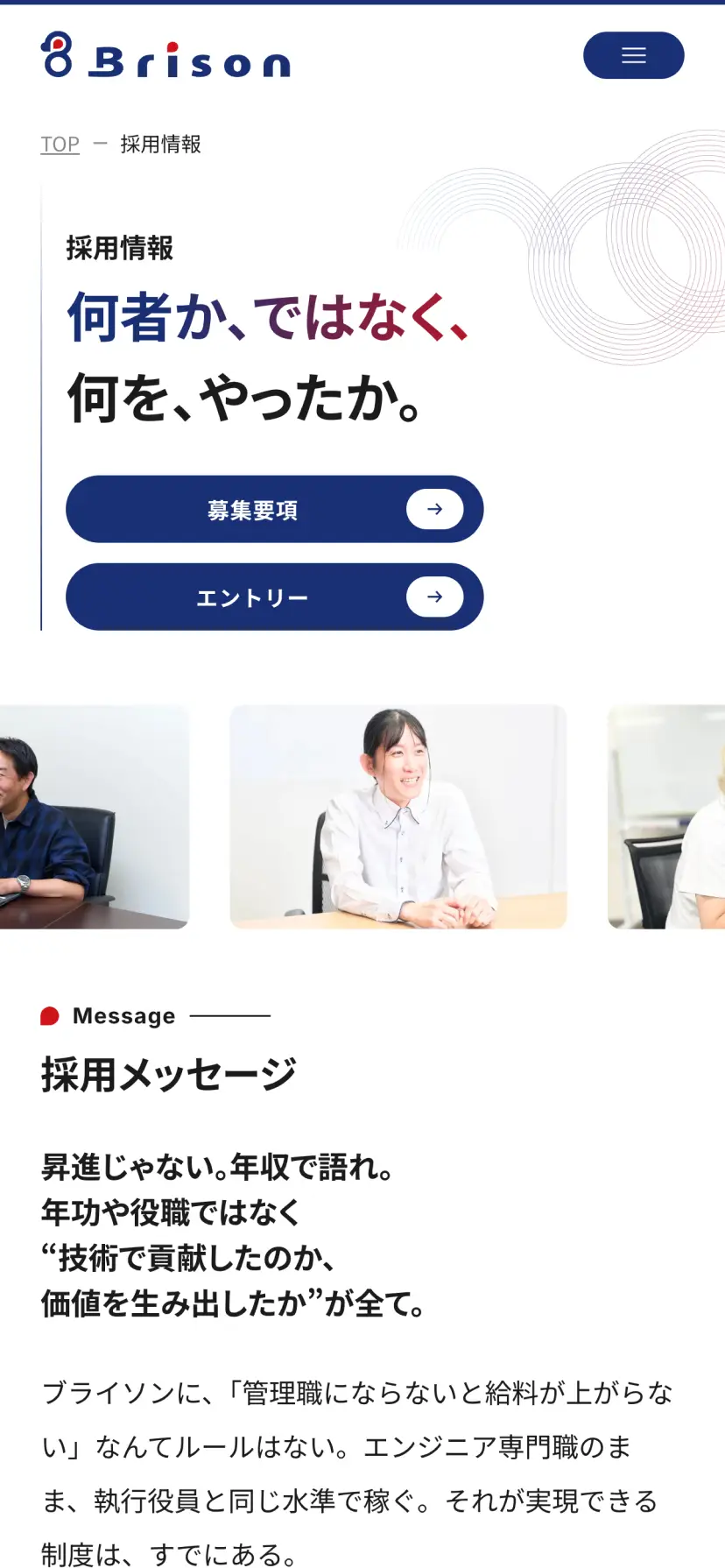 LeadGridでは、トップメッセージを中心に理念やカルチャーを自然に伝える情報設計を行い、事業内容・働き方・求める人物像が一貫して伝わる構成へ刷新。採用ページではカルチャーフィットを重視したコンテンツを設け、社長の思想を軸にブランディングを再構築しました。企業の姿勢と魅力が正しく伝わるコーポレートサイトを構築しました。