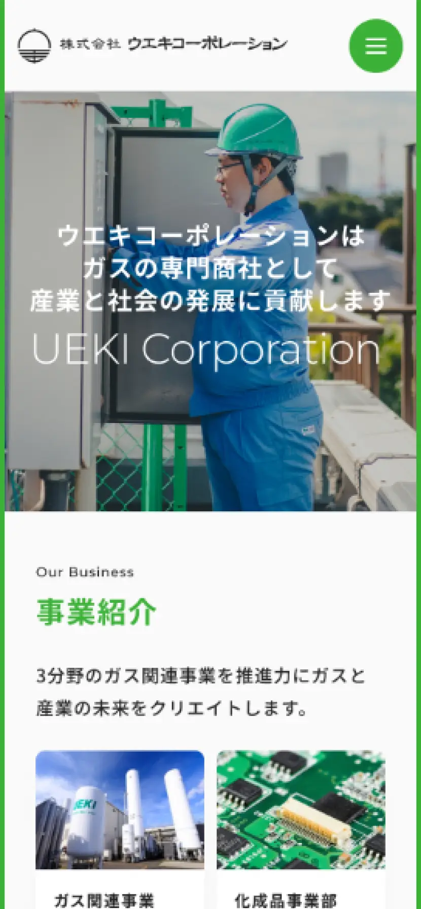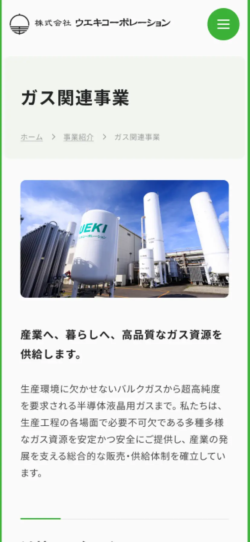 LeadGridでは、複雑な事業構成を正しく理解してもらうため、情報の整理と導線設計を再構築。「事業紹介」ページでは、各事業の概要から関連する製品ページへシームレスに遷移できる構成とし、抽象的な説明から具体的な製品イメージへ自然に導く情報設計を行いました。また「商品とサービス」ページでは、多岐にわたる取扱製品をカテゴリごとに体系化し、ユーザーが目的の商品を直感的に探せるナビゲーションを設計しました。デザイン面では、既存サイトのブランドカラーである緑を踏襲しながらも、余白設計とフォントバランスを見直し、信頼感と洗練性を両立。業界の堅実さと先進性を感じさせるコーポレートサイトを構築しました。
